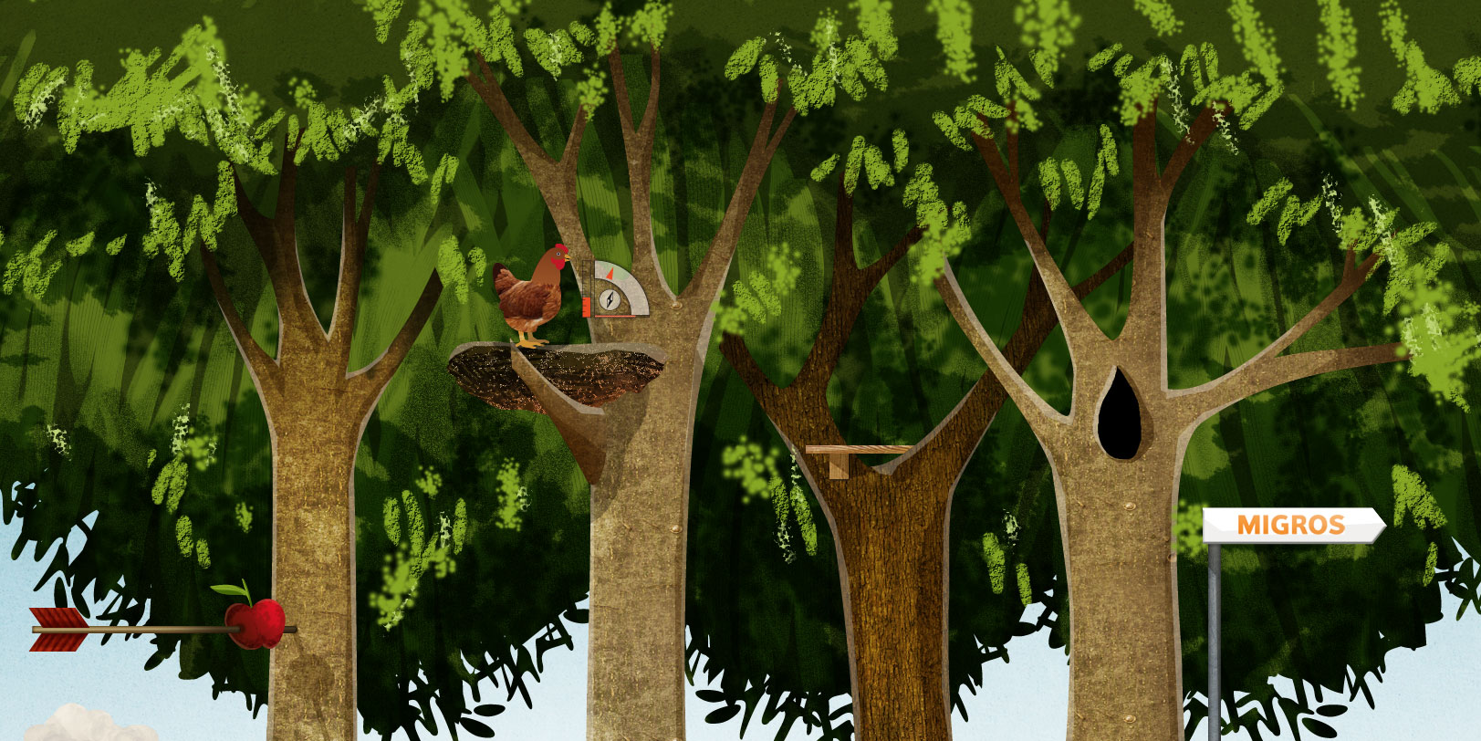 Beauftragt von Lekkerwerken entwickelte ich eine Online Spiel für die Schweizer Supermarktkette Migros. Dieses greift die Idee der zugrundeliegenden TV Kampagne auf: ein Huhn wandert vom Bauernhof bis in den Supermarkt, um dort sein frisches Ei direkt in die Schachtel zu legen. Diesen Arbeitsweg können die Spieler nachverfolgen.